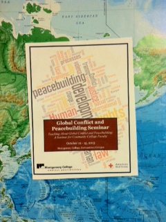 Starting on Saturday, October 12 through Tuesday, October 15, 2013 community college faculty from across the U.S. with gather at Montgomery College in Germantown, Maryland to explore global issues of peace and conflict. The program titled “Teaching About Global Conflict and Peacebuilding: A Seminar for Community College Faculty” is a joint effort of Montgomery College and the American Red Cross, International Humanitarian Law Dissemination Program and designed to provide an opportunity for community college educators to learn from Washington-based policy makers, practitioners, and educators about contemporary issues of war and peace. The program is being spearheaded by Jennifer Haydel of Montgomery College, Laurie Fisher from the American Red Cross, and David J. Smith, former senior manager at the U.S. Institute of Peace and editor of Peacebuilding in Community Colleges: A Teaching Resource. Street Law, Inc., the Fulbright Association, and The Democracy Commitment are providing additional sponsorship for the program.