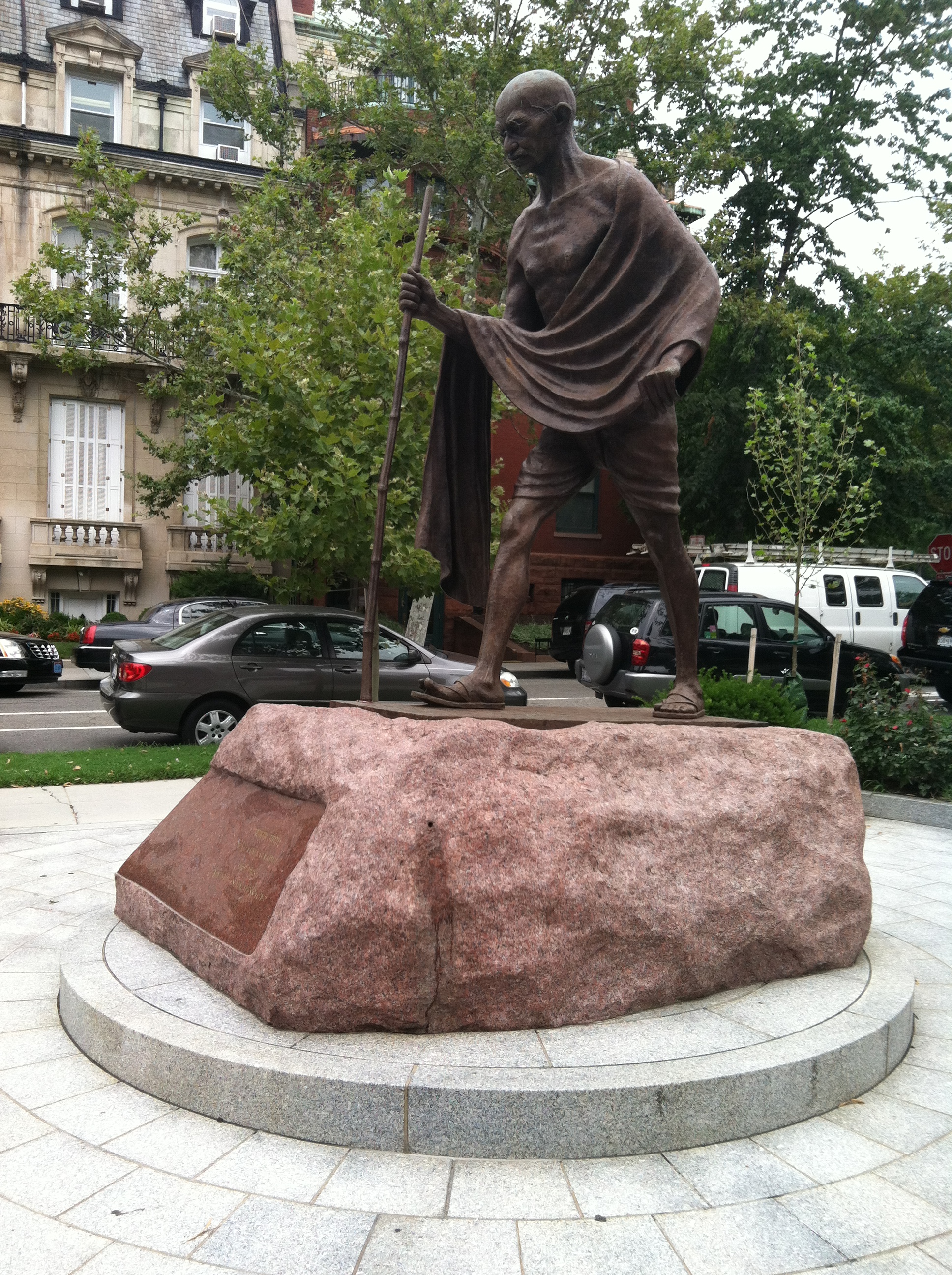 This past week I was near Dupont Circle having coffee with a colleague and walked up Massachusetts Avenue to visit one of the most recognizable statues in Washington, that of the Indian activist Mahatma Gandhi. The Gandhi Memorial was erected in front of the Indian Embassy in 2000 and sculpted by Gautam Pal of Calcutta. On Gandhi’s birthday, October 2, people will often take a short pilgrimage to the site and lay bouquets of marigolds in his honor.