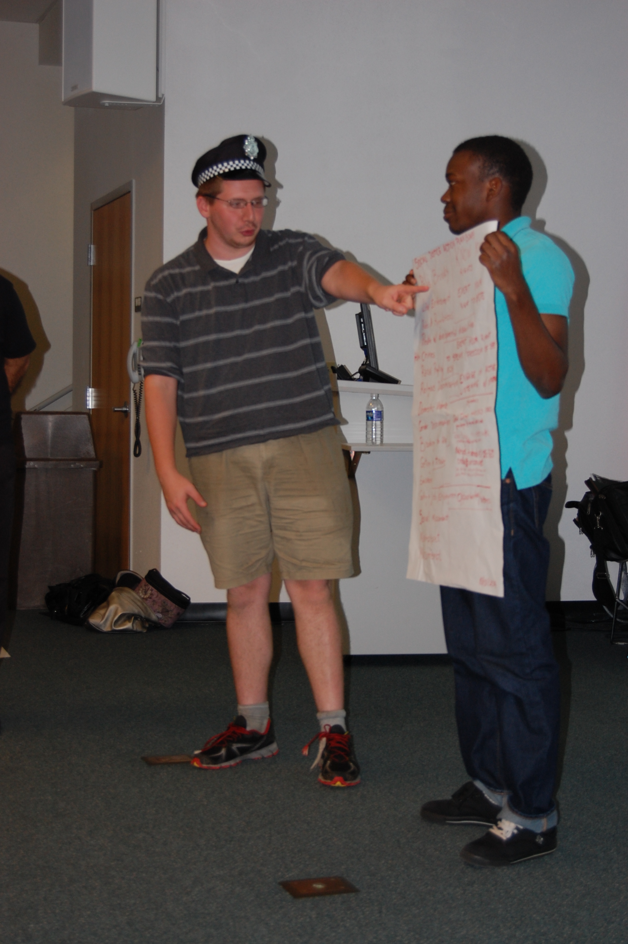 As students entered the auditorium for my event they were presented with either a “white” or “multi-colored” index card. This was done randomly. Once in the auditorium signs were posted that read: “white card holders sit in front” and “multi-card holders stand in the back.” I cited a fictitious ordinance as requiring this division. Students were clearly uncomfortable. I had faculty observers tell me that many were angry and frustrated, especially those that had to stand in the back.