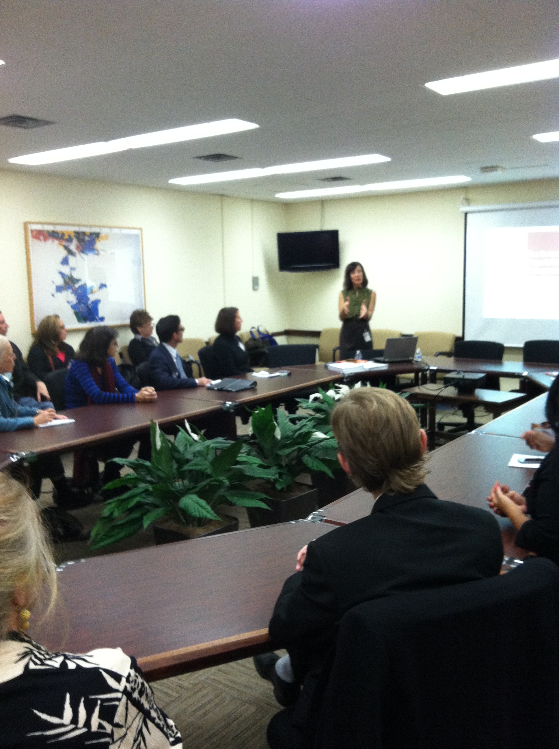 After the State Department, faculty visited the Organization of American States, the oldest regional organization in the world. The Department of Human Development, Education and Employment hosted the group. Nichole Duncan shared with the group scholarship opportunities at OAS, Juliet Mallet Phillip discussed the broader work of OAS, Ana Maria Ortiz talked about education opportunities, Lina Sevillano shared by the Rowe Fund, and Yadiro Soto briefed the group on the peacebuilding work of OAS. Other specialists also covered other aspects of the work of OAS.