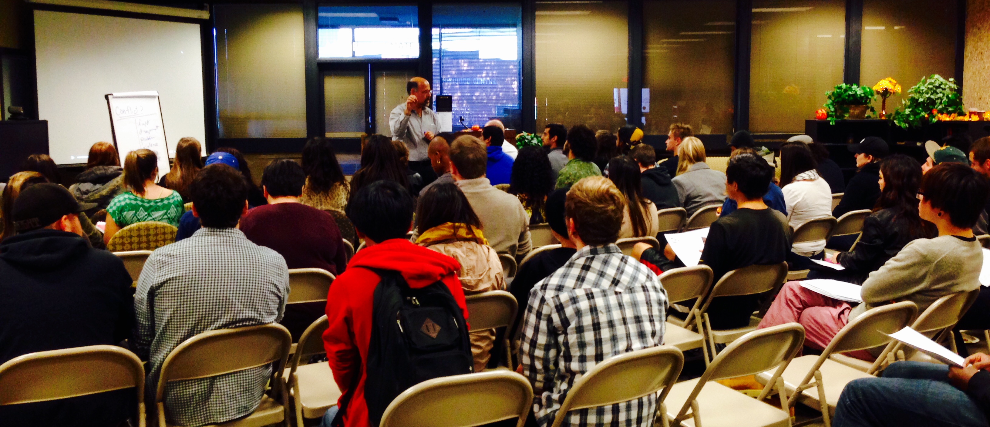During my visit to Prince George’s Community College (11/14/14) I explored with students the notion of “soft skills” that are often conflict focused, and how they might be applied in employment situations that have “global” contexts such as in hiring new employees who are recent immigrants. At Butte College (11/17/14), students were asked to consider their views of peace and conflict. Through this exploration, students came to understand differences often based in culture in how conflict is considered. In a workshop with faculty, I shared with them how peacebuilding can be used to foster dialogic approaches to learning about each other and international issues. In a faculty program at Northern Virginia Community College (11/18/14), we considered how peacebuilding using the Lederach/Mansfield frame can achieve objectives including global awareness. Finally, at Northwest Vista College (11/24/14), students considered specific professional and personal situations where conflict resolution strategies would be helpful, especially where those in conflict are from different cultures and backgrounds.