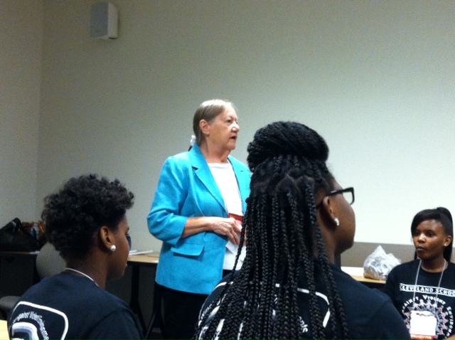 I had the opportunity to attend a session where students from Cleveland Public Schools’ Winning Against Violent Environments (W.A.V.E.) program shared about their program. The students led activities that emphasized building conflict resolution skills and raising peacebuilding awareness. Exercises included the “Chocolate Kiss Game” that focused on looking at conflict in a cooperative way and the “Inside Outside Game” which looked at inclusion/exclusion. The faculty leaders, Carole Close and Antonio Sanford, talked about the history and benefits of W.A.V.E., but the activities were run by students.