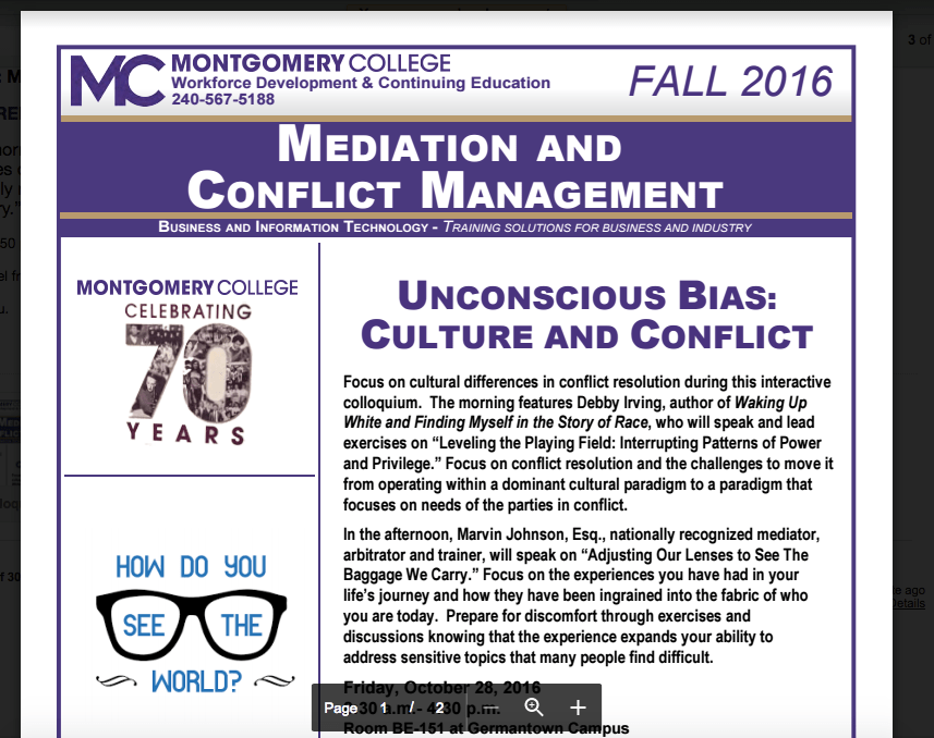 Montgomery College Presents – Unconscious Bias: Culture and Conflict