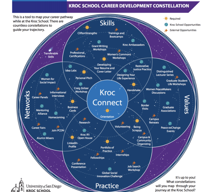 The Kroc School at the University of San Diego recently developed a “skymap” that is used with their students in considering career pathways.