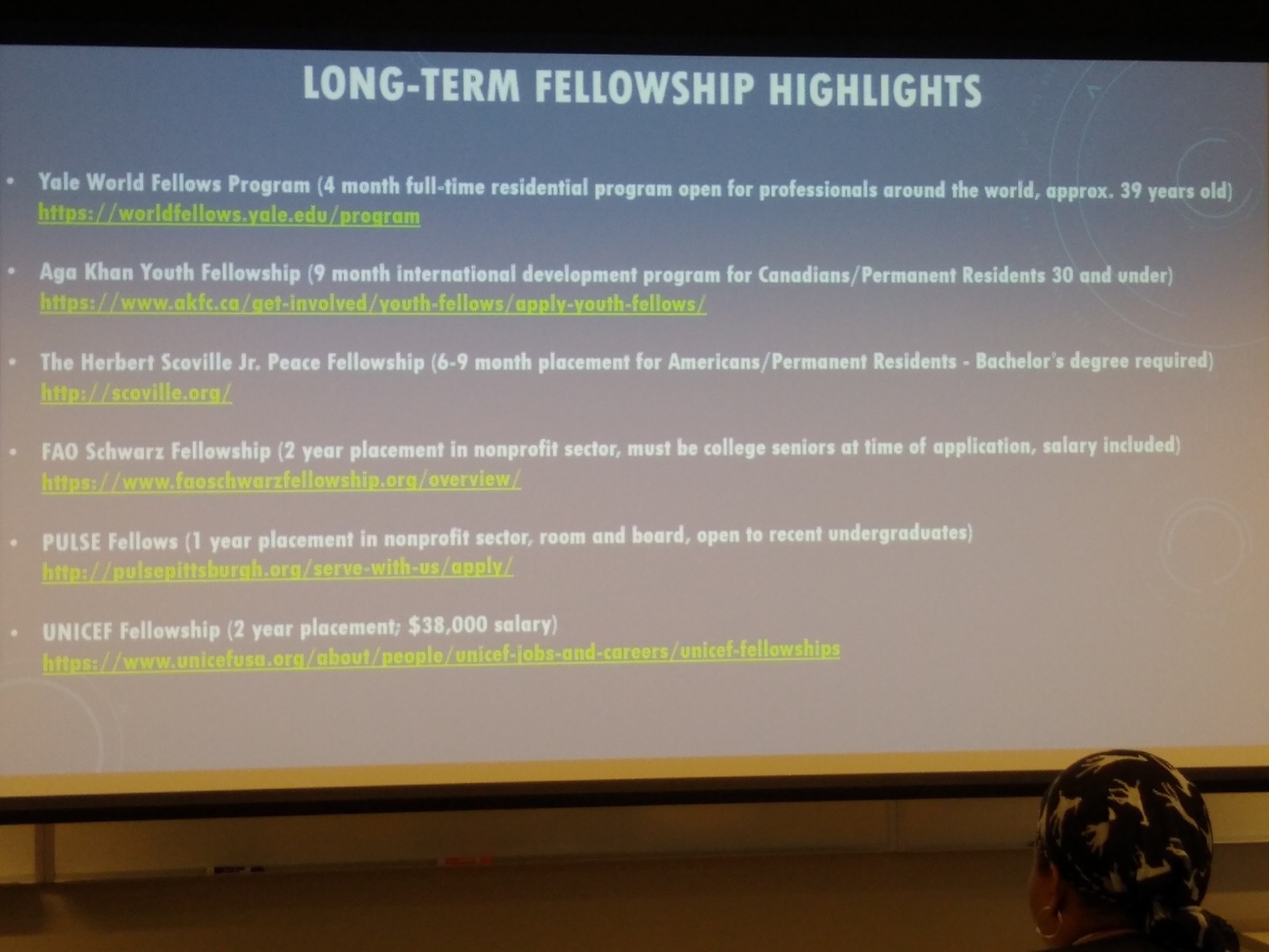 He provide a list of “long-term” fellowships (below slide). These are programs for both graduate and undergraduate students.