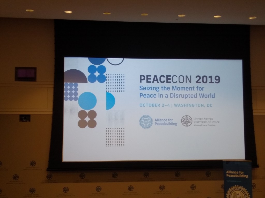 PeaceCon 2019, the annual conference of the Alliance for Peacebuilding (AfP), was held October 2-4, 2019 in Washington, DC. The first day was held at the U.S. Institute of Peace (USIP), and second and third days at FHI360.