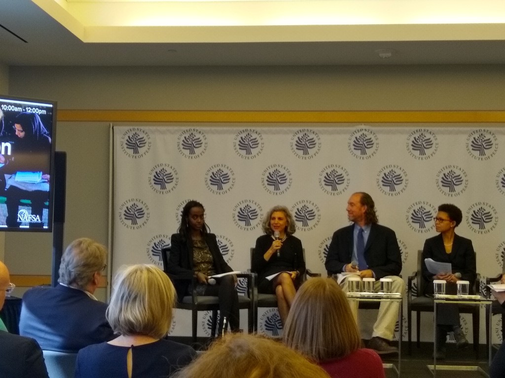 Jill Welch mentioned NAFSA’s current efforts with community colleges which will continue. Several panelists mentioned the importance of working with veterans and bringing them into the classroom as students and experts. Lifelong learning was also raised, particularly with audiences not generally considered in peacebuilding efforts and those beyond the Washington “beltway.”