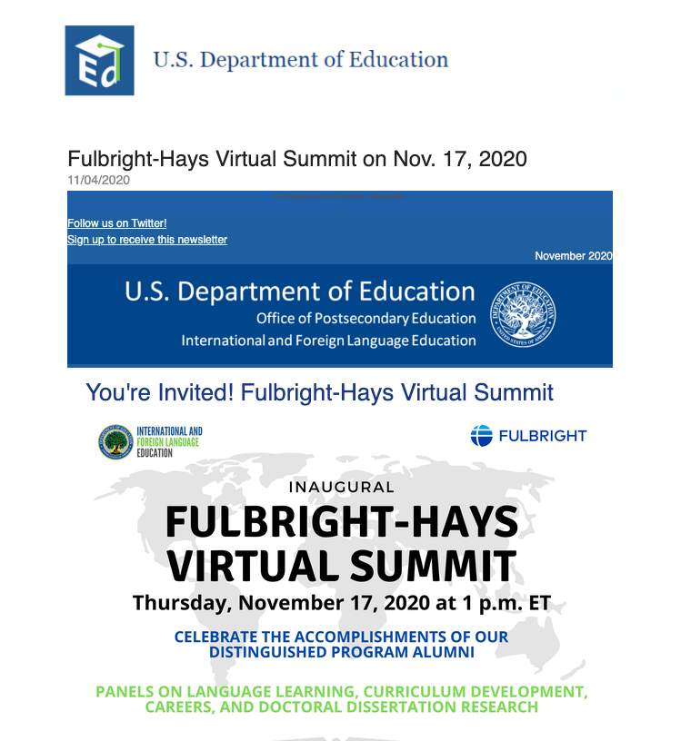 - Panel Discussions with program alumni on dissertation research experiences, curriculum development projects, language learning experiences, and the impact of Fulbright-Hays programs on their careers