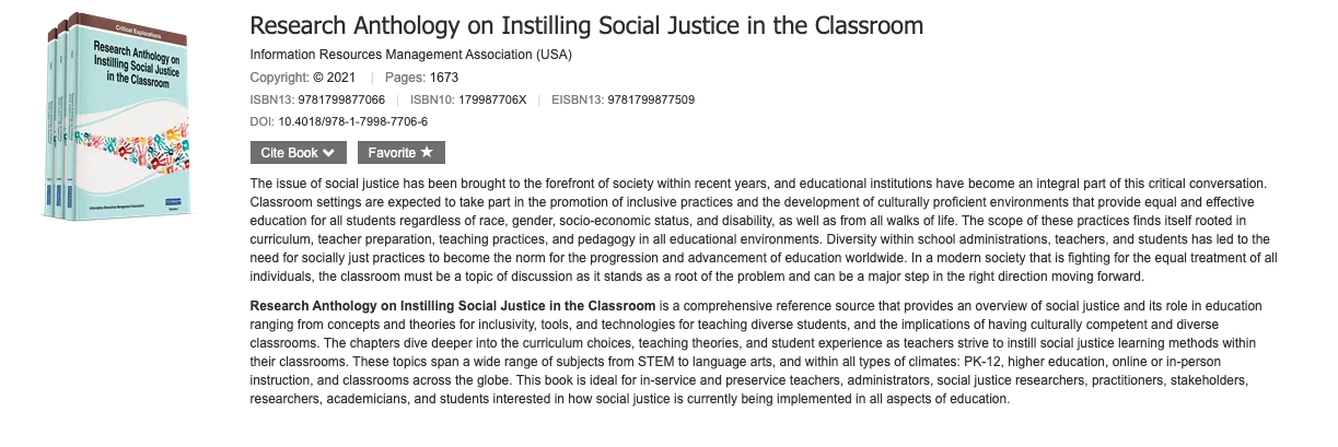Research Anthology on Instilling Social Justice in the Classroom (IGI Global 2021)to include “Peacebuilding as a Means to Global Citizenry”