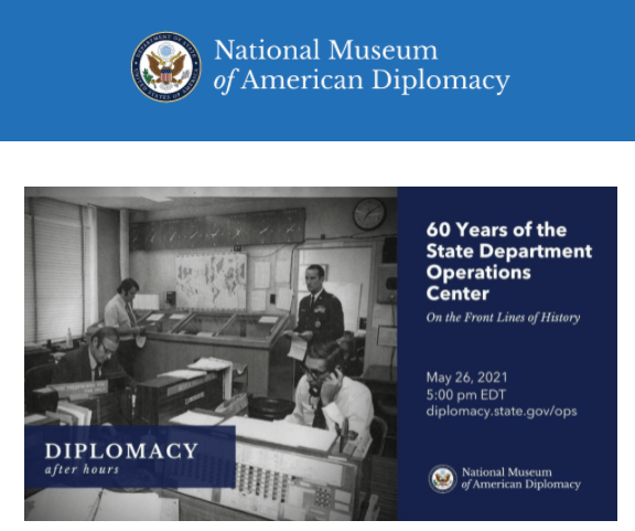Join the National Museum of American Diplomacy for a discussion about the State Department’s 24/7 crisis communication hub, the Operations Center, and explore its important role in protecting American interests over the past 60 years. Hear first-hand stories from diplomats who work on “the watch” and crisis management team and learn how they assist in communicating critical messages from around the world to American leaders.