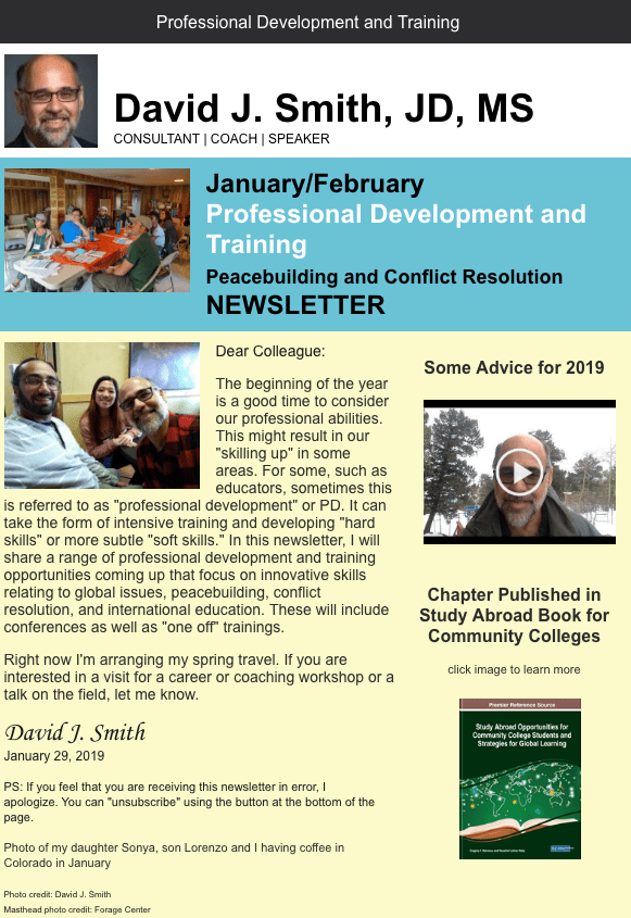 My January/February 2019 Newsletter is out! In this edition I focus on professional development and training. Click the link below. https://conta.cc/2G7lnw0