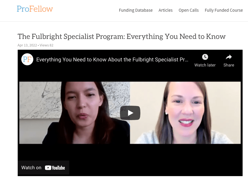 If you are thinking of a Fulbright grant, this program with Vicki Johnson of ProFellow might be worth your time and money.