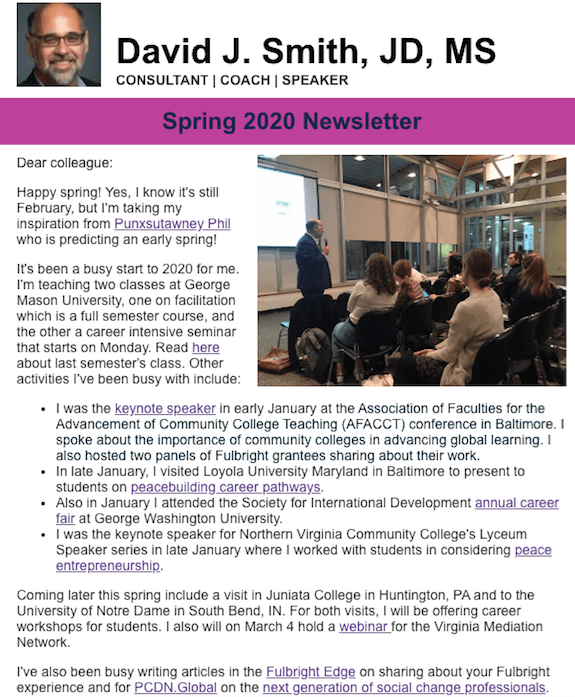 My spring 2020 newsletter is out! Besides providing a rundown of my activities and upcoming events, I provide in this edition resources to work life issues and the changing nature of work. Take a look! Go here to read the newsletter.