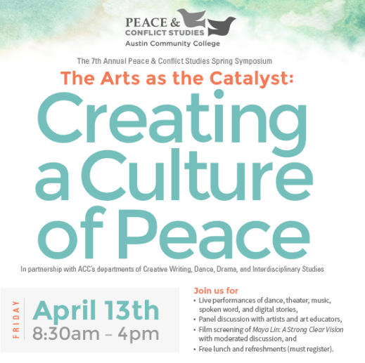 The Arts as the Catalyst: Creating a Culture of Peace, Austin Community College, Austin, TX, 4/13/18
