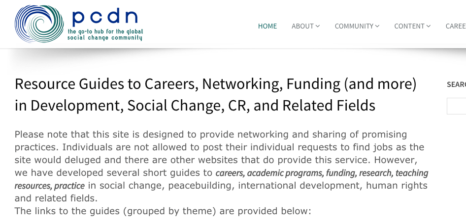 Updated Resource Guides to Careers, Networking, Funding in Development, Social Change, Conflict Resolution and Related Fields