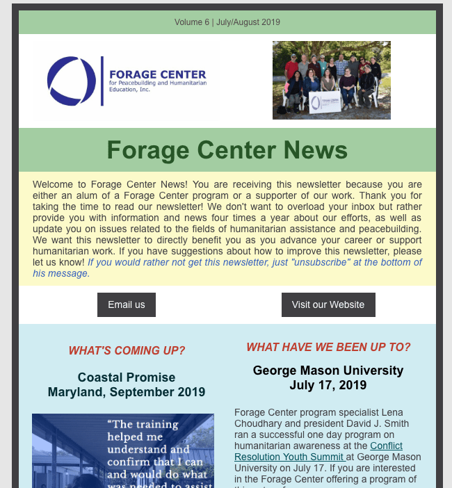 Aid groups interviewing refugees For the 3rd year the Forage Center for Peacebuilding and Humanitarian Education participated in the Conflict Resolution Youth Summit at George Mason University (GMU) in Fairfax, VA. It is a one-week summer day program held for rising 10th, 11th, and 12th grade students interested in exploring some of today’s toughest problems throughContinueContinue reading “Conflict Resolution Youth Summit: Advancing Humanitarian Awareness with High School Students, George Mason University, 7/16/19”