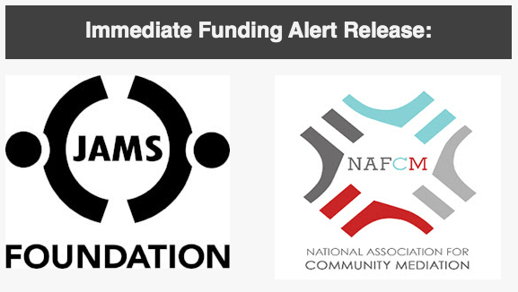 The JAMS Foundation and National Association for Community Mediation (NAFCM) are pleased to announce the seventh Community Mediation Mini-Grant Program (“Program”). The purpose of this year’s Program is to fund the development and refinement of innovative and emerging community mediation center services that: Involve young adults (21-35 years old) in addressing issues of race, ethnicity or economic marginalization. This isContinueContinue reading “JAMS/NAFCM Community Mediation Grant”