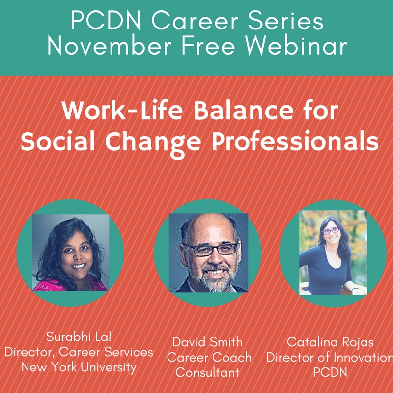 PCDN Career Series, November Free Webinar, Work-Life Balance for Social Change Professionals, 11/30/17