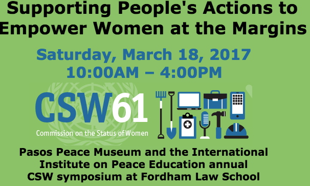 By: David J. Smith, February 16, 2017 If you are interested in supporting women’s issues and advancing women’s empowerment, you might consider this one day conference at Fordham University in New York City set for March 18. It is being co-sponsored by the Pasos Peace Museum and the International Institute on Peace Education. Click belowContinueContinue reading “NYC Conference on Women’s Empowerment, Fordham University, 3/18”