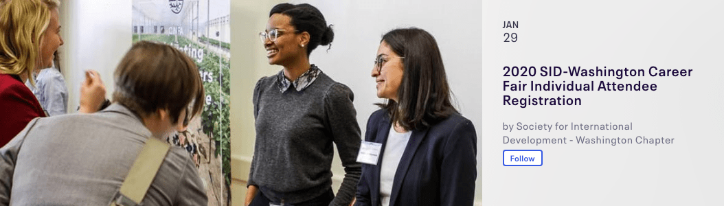 If you are a young professional or recent grad interested in international development opportunities, I would recommend the upcoming SID-W career fair in DC. It will be January 29, 2020 at GW. Registration information is here. I wrote about last year’s conference here.