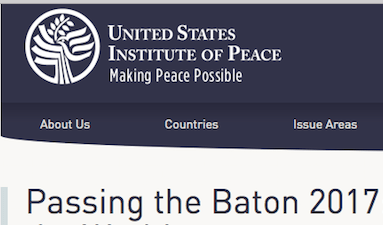 By: David J. Smith, December 21, 2016 When a new administration comes in, the U.S. Institute of Peace holds a “Passing the Baton” event that looks at international issues including peacebuilding and security. With the Trump Administration coming into power, USIP’s event Tuesday, January 10. Getting tickets the event would be nearly impossible, but apparentlyContinueContinue reading “Passing the Baton Event at USIP, January 10, 2017 (Webcast)”