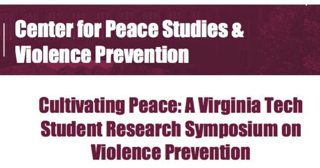 Cultivating Peace: A Virginia Tech Student Research Symposium on Violence Prevention, 4/20-21, Registration Now Open